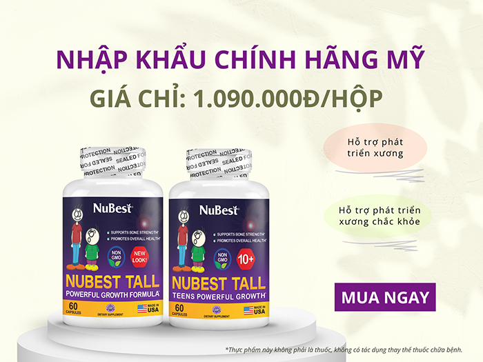 - TPBVSK NuBest Tall: Dành cho trẻ em và thanh thiếu niên từ 5 - 18 tuổi. Sản phẩm bổ sung Canxi, Collagen thủy phân, 5-HTP, Bạch quả và 7 loại thảo dược thiên nhiên, hỗ trợ phát triển xương, hỗ trợ xương răng chắc khỏe.