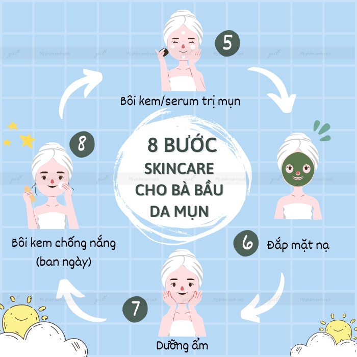 Tổng hợp 8 bước cơ bản trong quy trình skincare mỗi ngày cho bà bầu.